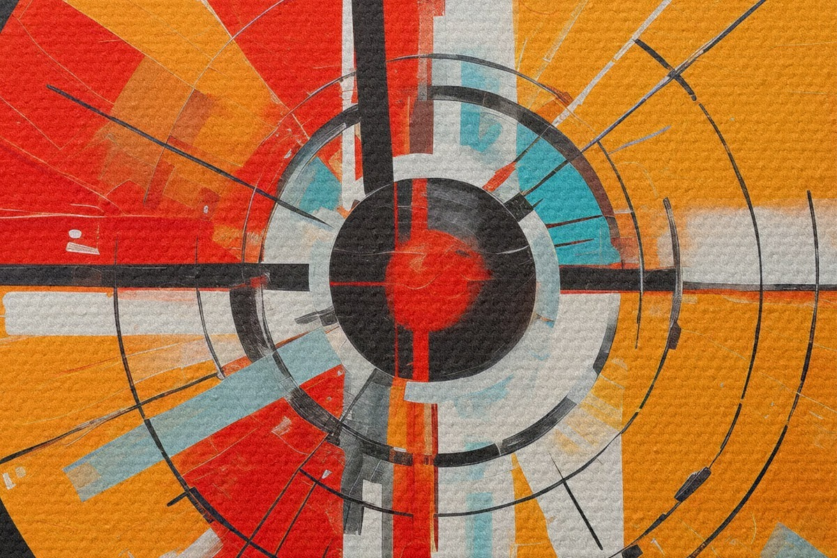 Apaļas gleznas Koncentrisks mērķis ar zaļgani zilganiem un oranžiem segmentiem r46486