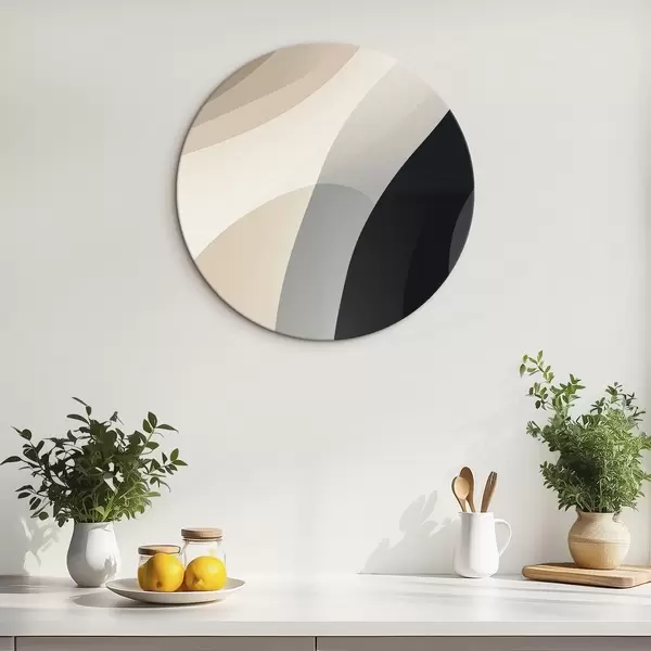 Apaļas gleznas Organiskas viļņu formas siltā smilškrāsā un ogļu krāsā r46494