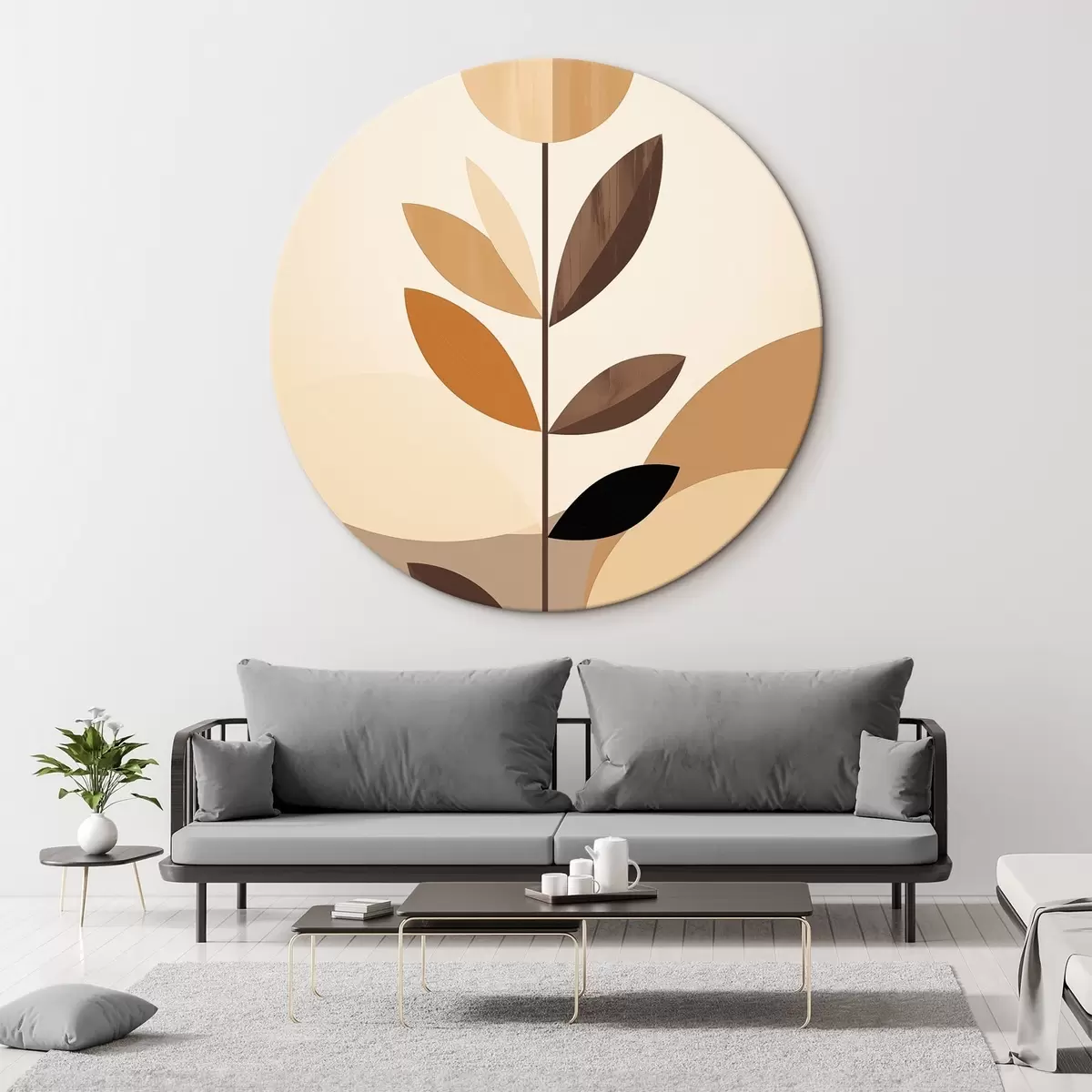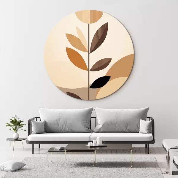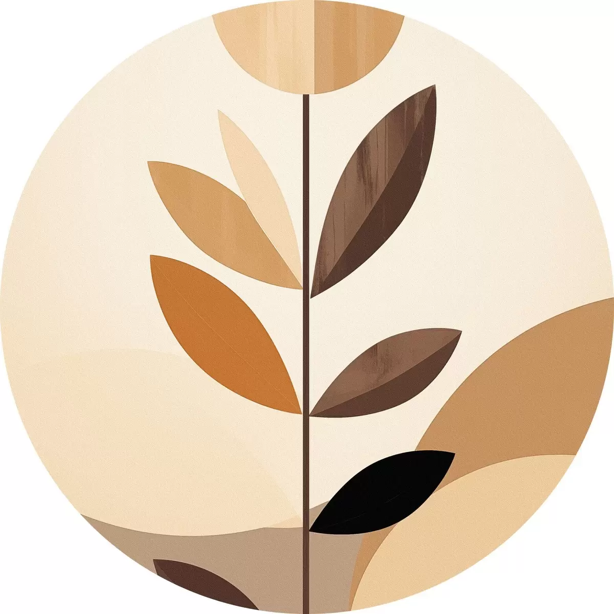 Apaļas gleznas Stilizēts zieds ar ģeometriskām lapām siltos toņos r46500