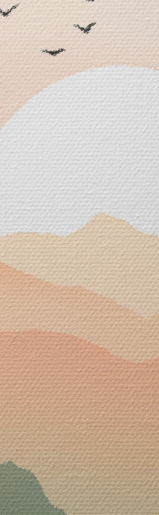 Attēls Pastelkrāsaina saulrieta virs klusā ezera ar tālumā redzamajiem kalniem un putniem Nr r46508
