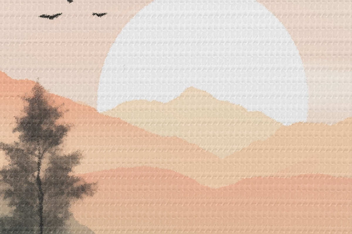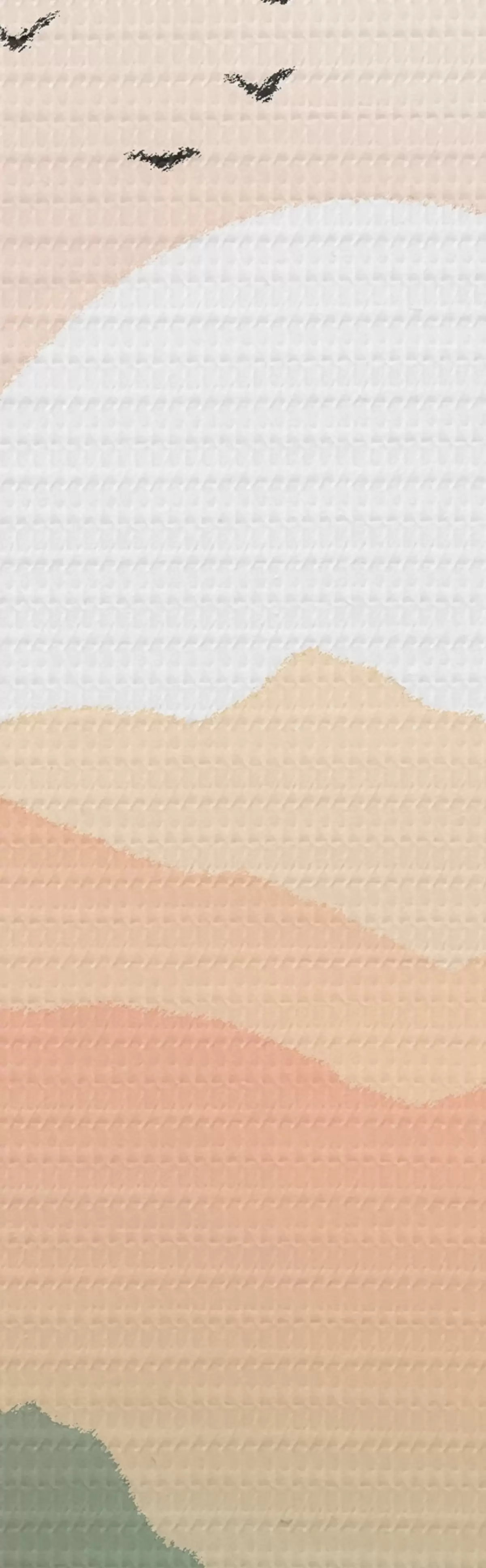 Attēls Pastelkrāsaina saulrieta virs klusā ezera ar tālumā redzamajiem kalniem un putniem Nr r46508