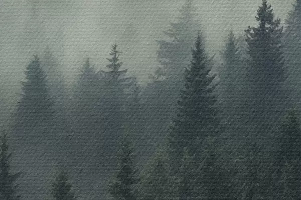 Attēls Migla pārklāj blīvu mūžzaļo mežu Nr r46512