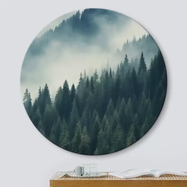 Apaļas gleznas Migla virs skujkoku nogāzēm, dziļi zaļie toņi r46516