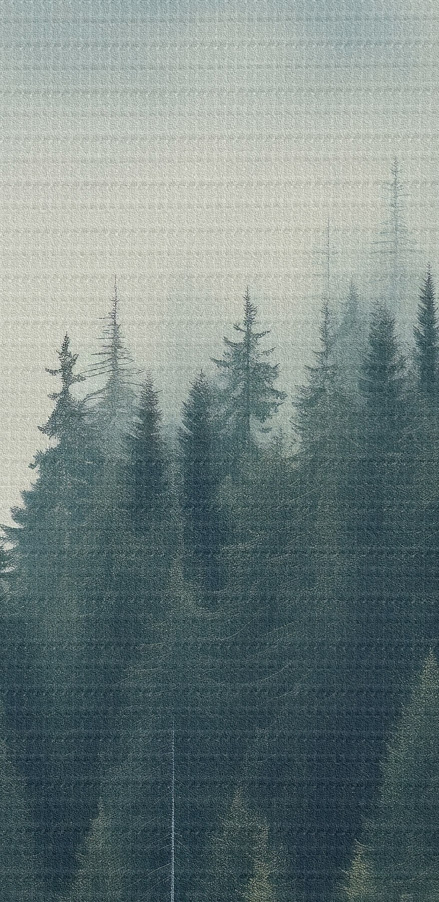 Attēls Migla virs skujkoku nogāzēm, dziļi zaļie toņi Nr r46516
