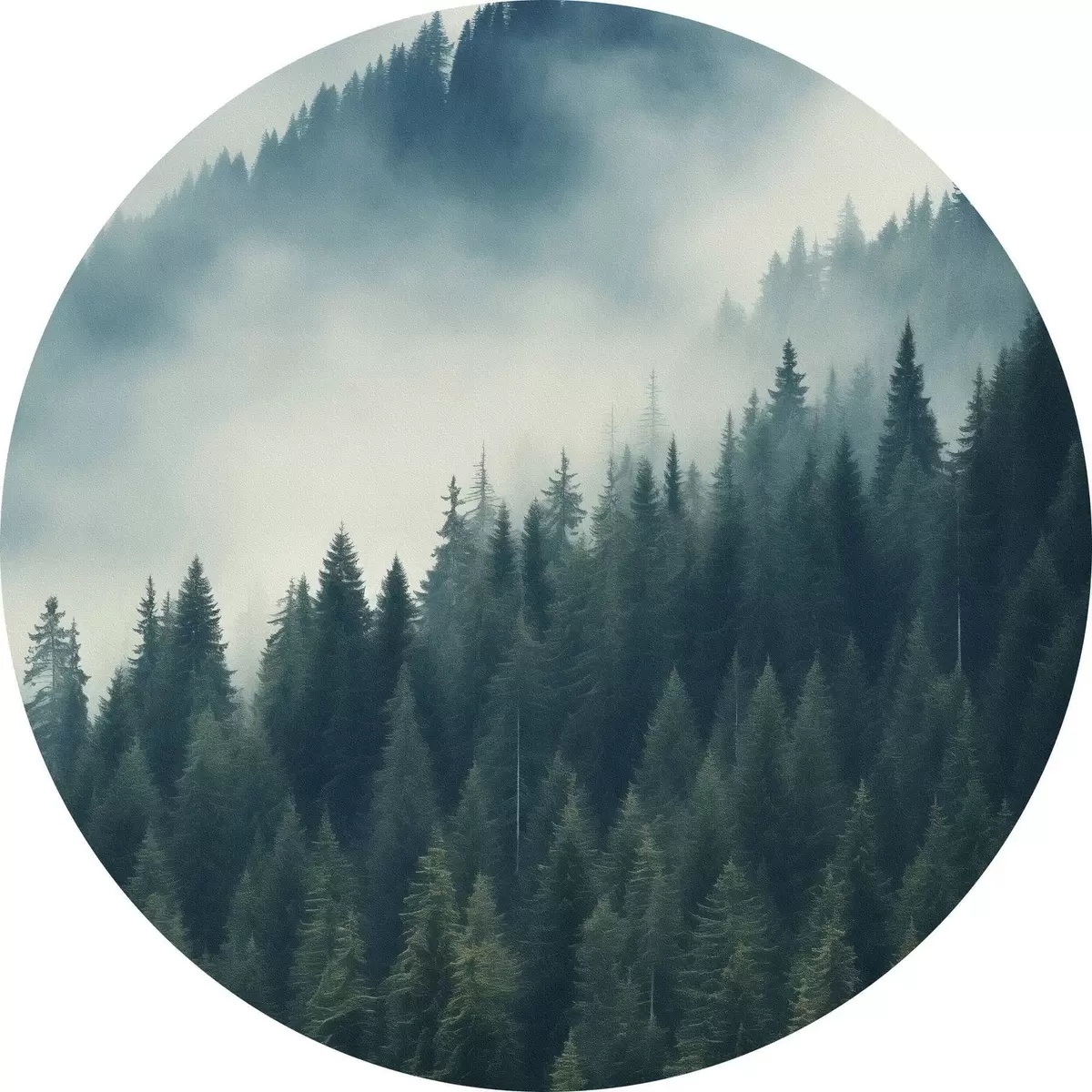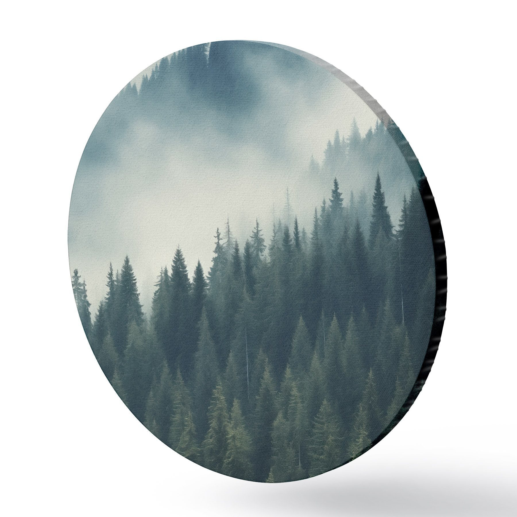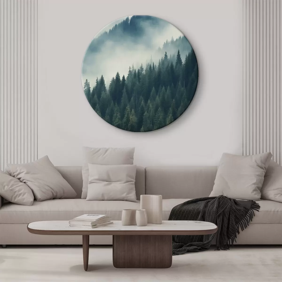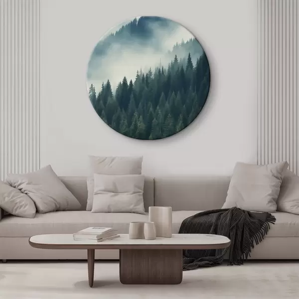 Apaļas gleznas Migla virs skujkoku nogāzēm, dziļi zaļie toņi r46516
