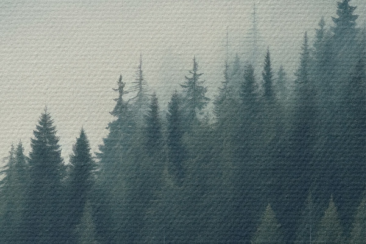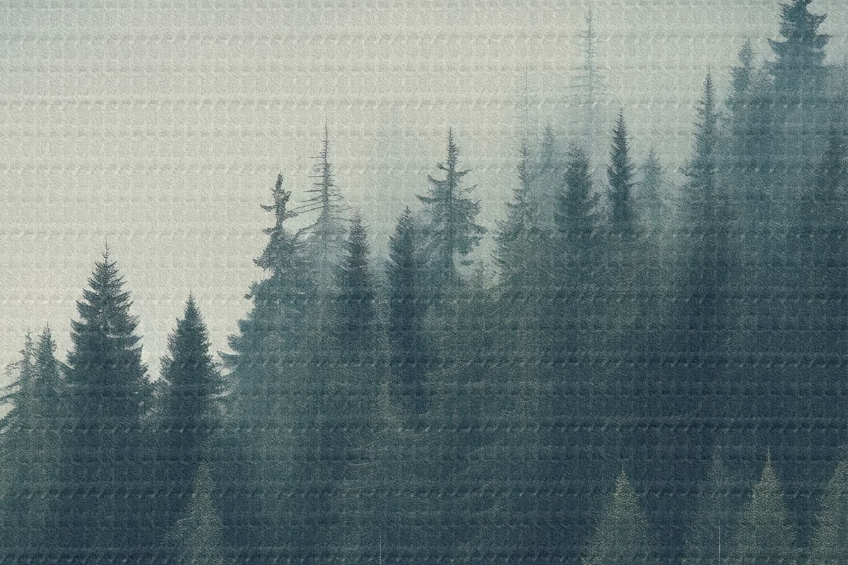 Attēls Migla virs skujkoku nogāzēm, dziļi zaļie toņi Nr r46516