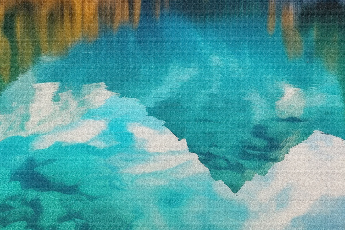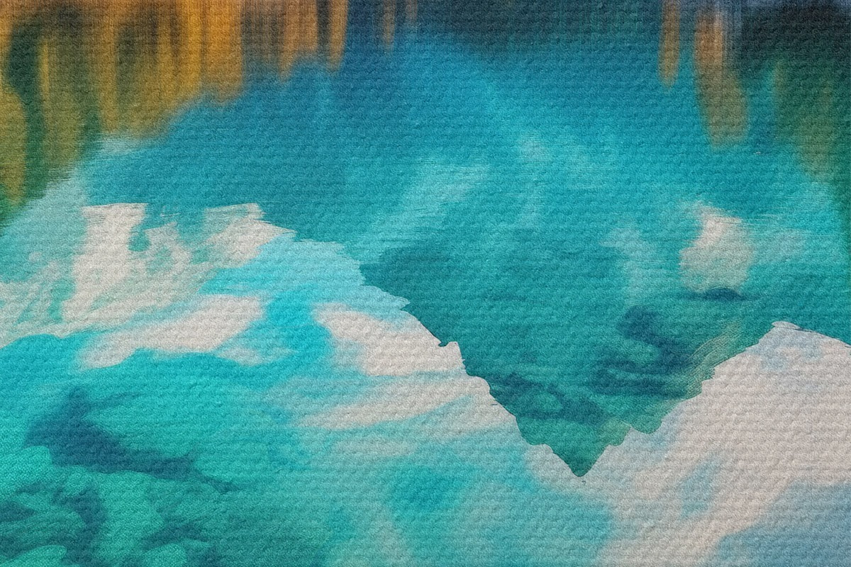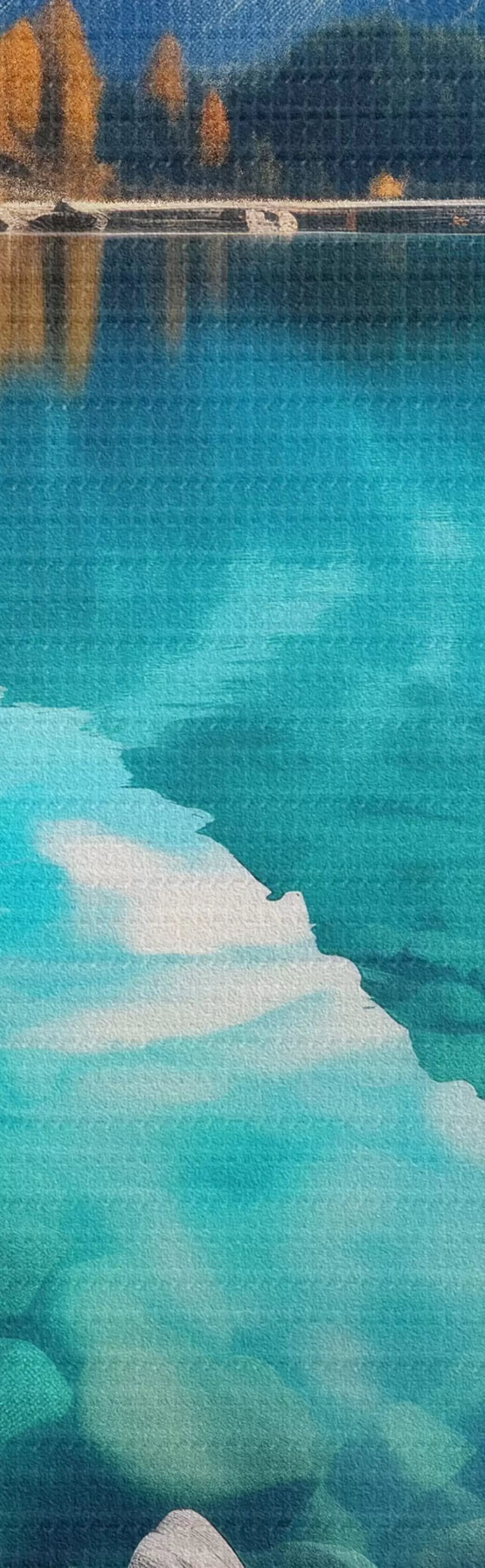 Attēls Kalnu ezers ar tirkīza krāsas ūdeni un rudens lapeglēm Nr r46517
