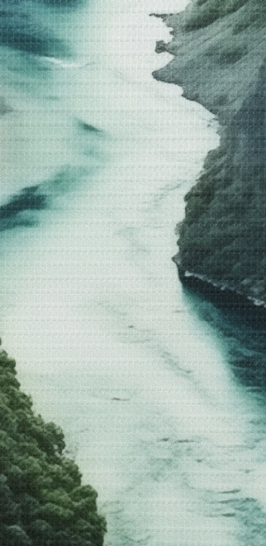 Attēls Šaura aiza ar turkīza krāsas straumi no augšas Nr r46522
