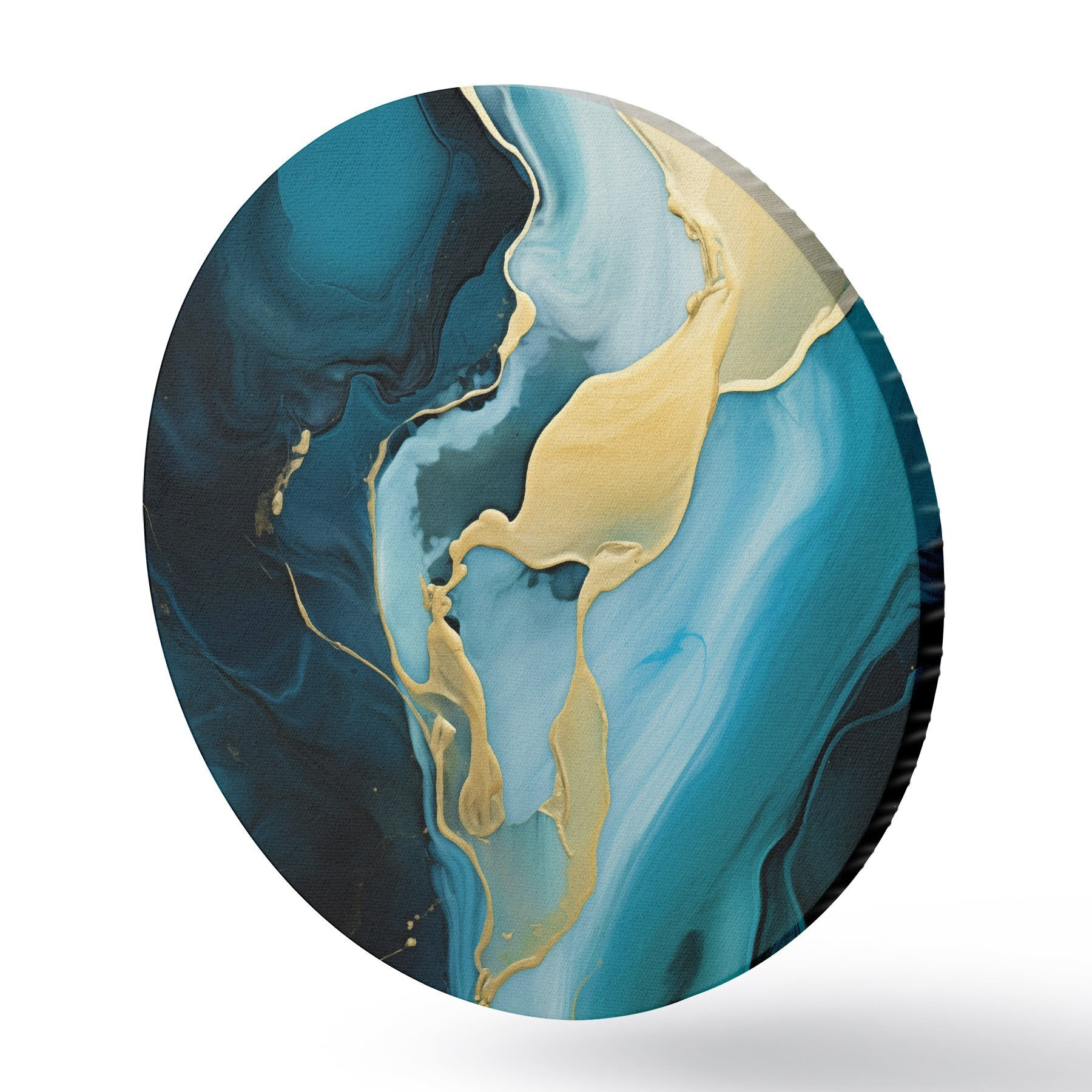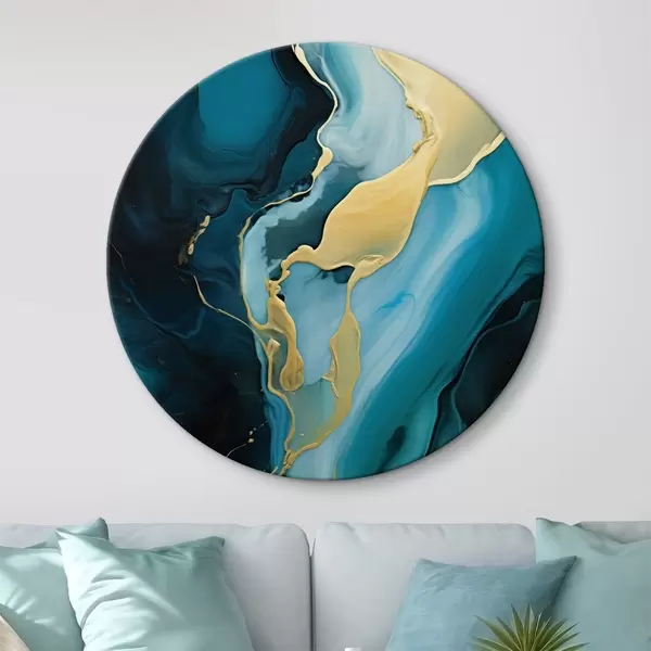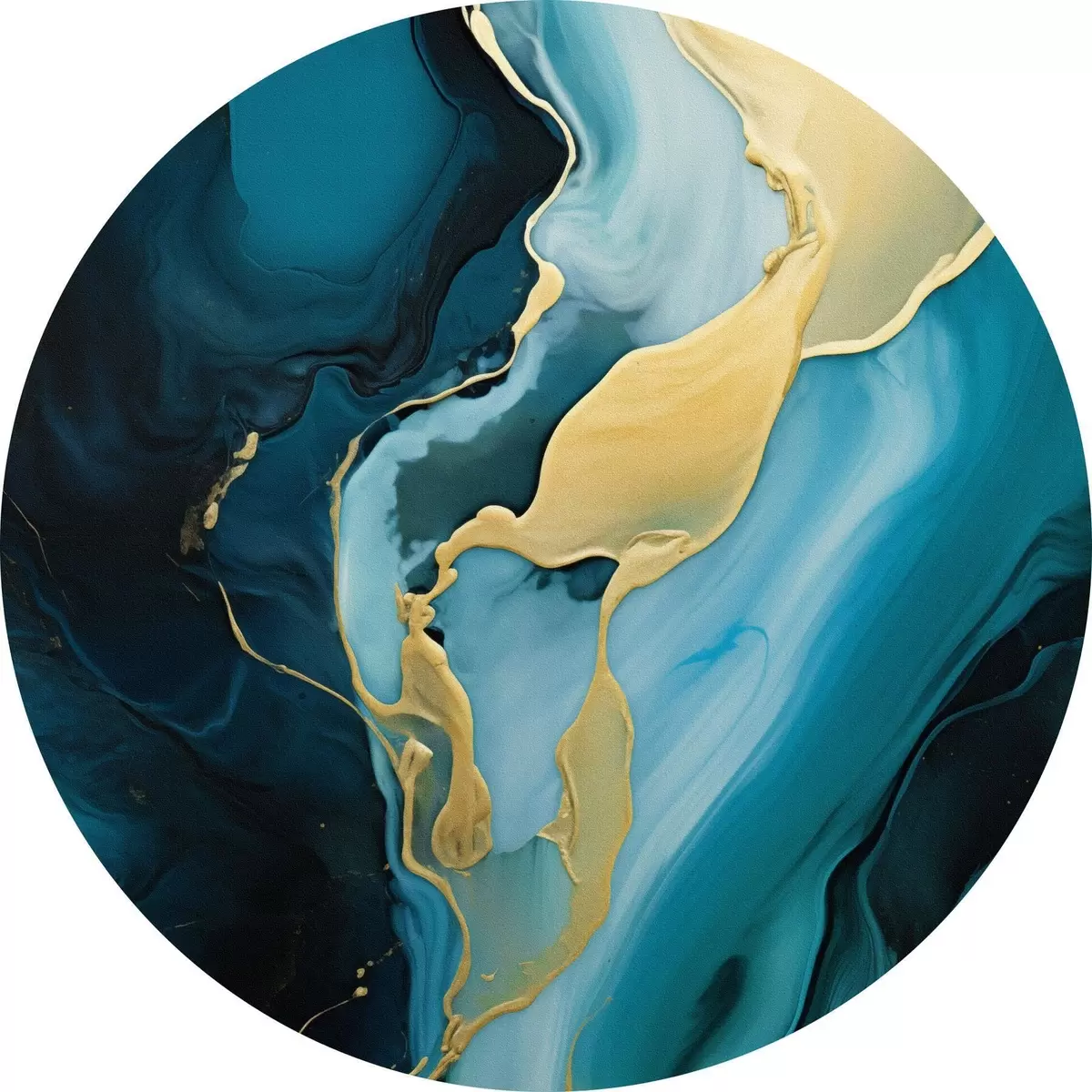 Apaļas gleznas Tirkīza zils abstrakts ar okera plūsmu r46530