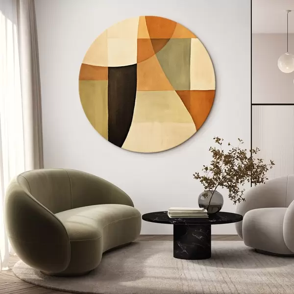 Apaļas gleznas Mīksti ģeometriski lauki siltā dabiskā krāsu gamā r46538