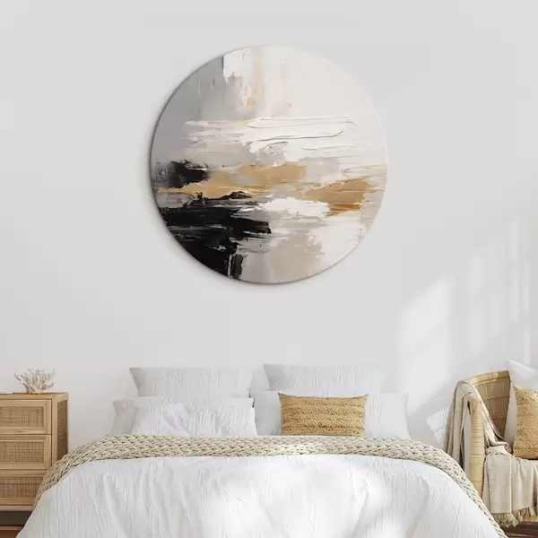 Apaļas gleznas Kailā toņa triepieni ar kontrastējošu melnu un okera slāni r46544