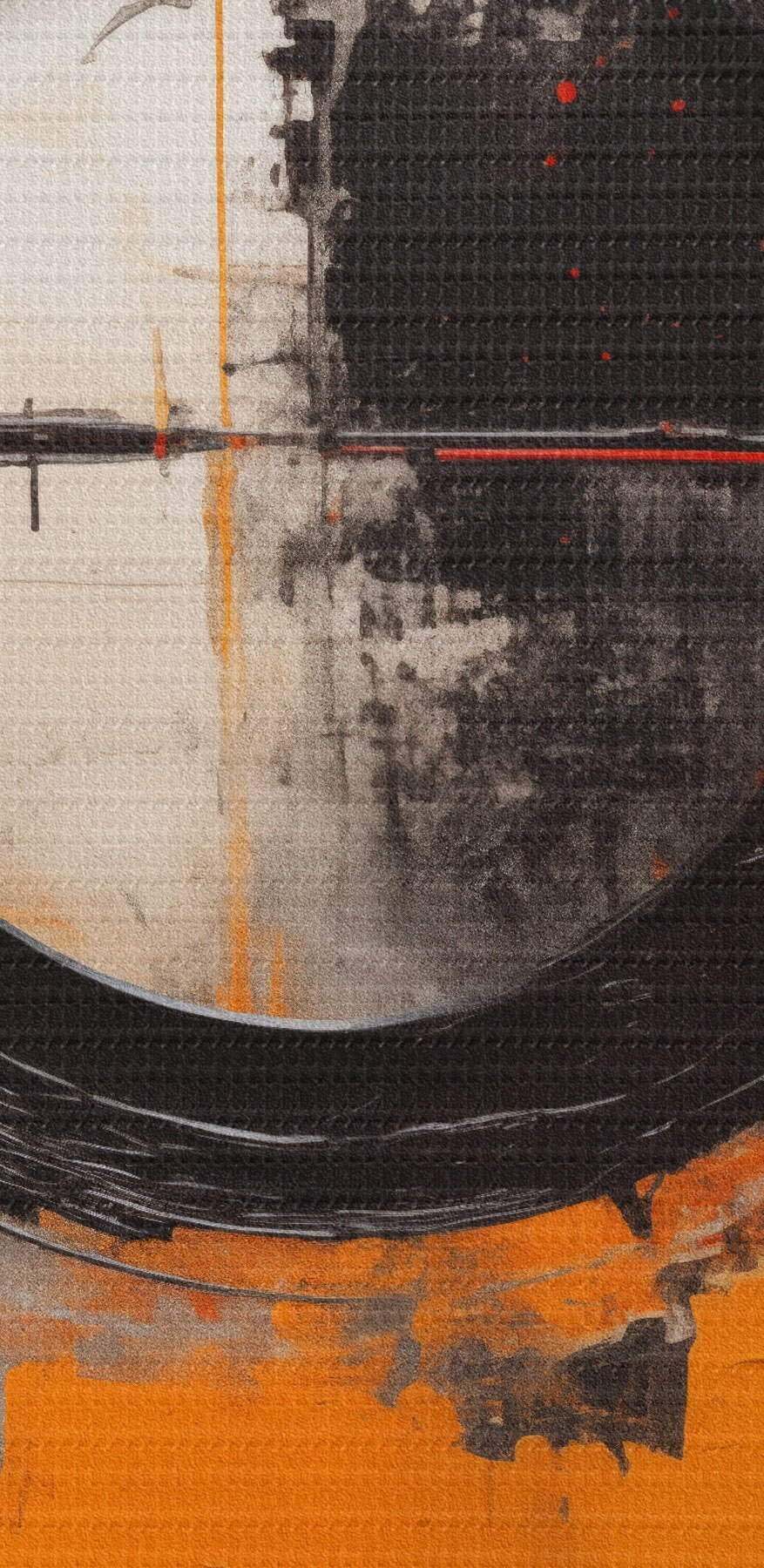 Attēls Melna apļa uz balta fona, oranžas līnijas un šļakatas Nr r46549