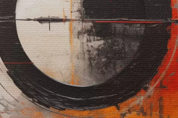 Attēls Melna apļa uz balta fona, oranžas līnijas un šļakatas Nr r46549