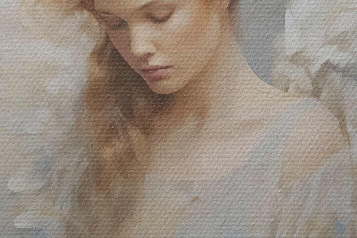 Smalkais diegu pinums uz šī audekla atgādina profesionālu mākslinieku audeklu virsmu.