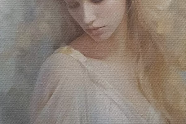 Smalkais diegu pinums uz šī audekla atgādina profesionālu mākslinieku audeklu virsmu.