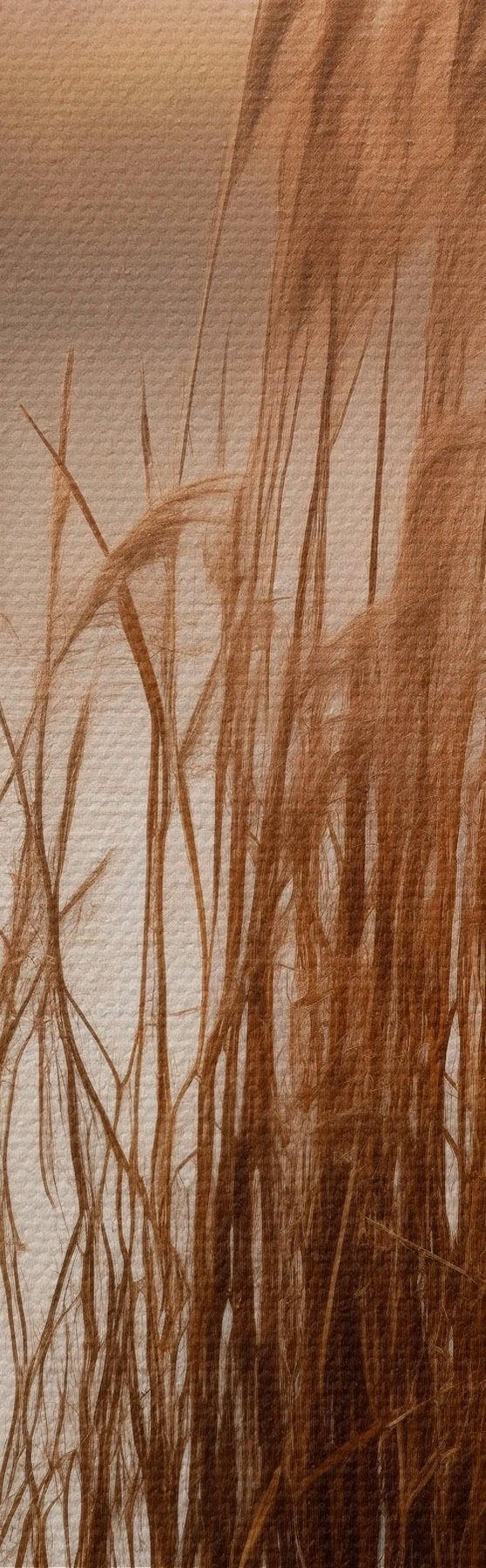 Apaļas gleznas Augsti niedres, kas aug ūdenstilpē, ūdens atspoguļo niedres, miglains fons, maiga gaisma, dabas skats r46695