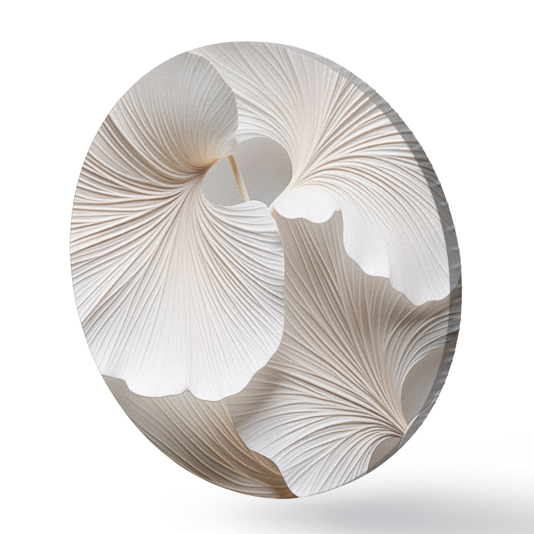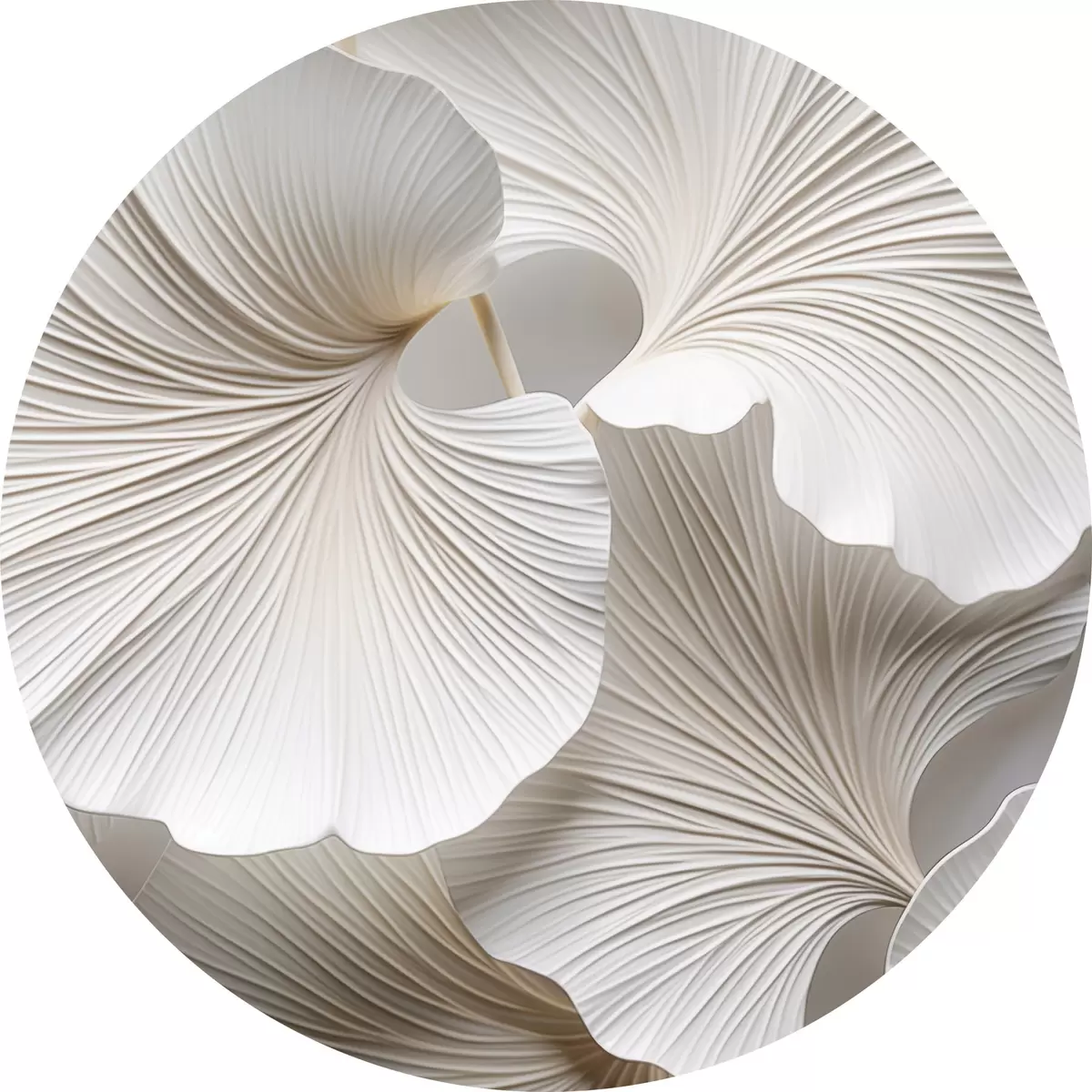 Apaļas gleznas Baltas ginkgo biloba lapas ar izteiktām vēnām, maigu apgaismojumu, teksturētu elegantu un minimālistisku dizainu r46705