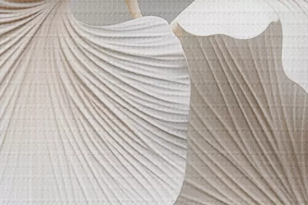 Attēls Baltas ginkgo biloba lapas ar izteiktām vēnām, maigu apgaismojumu, teksturētu elegantu un minimālistisku dizainu Nr r46705