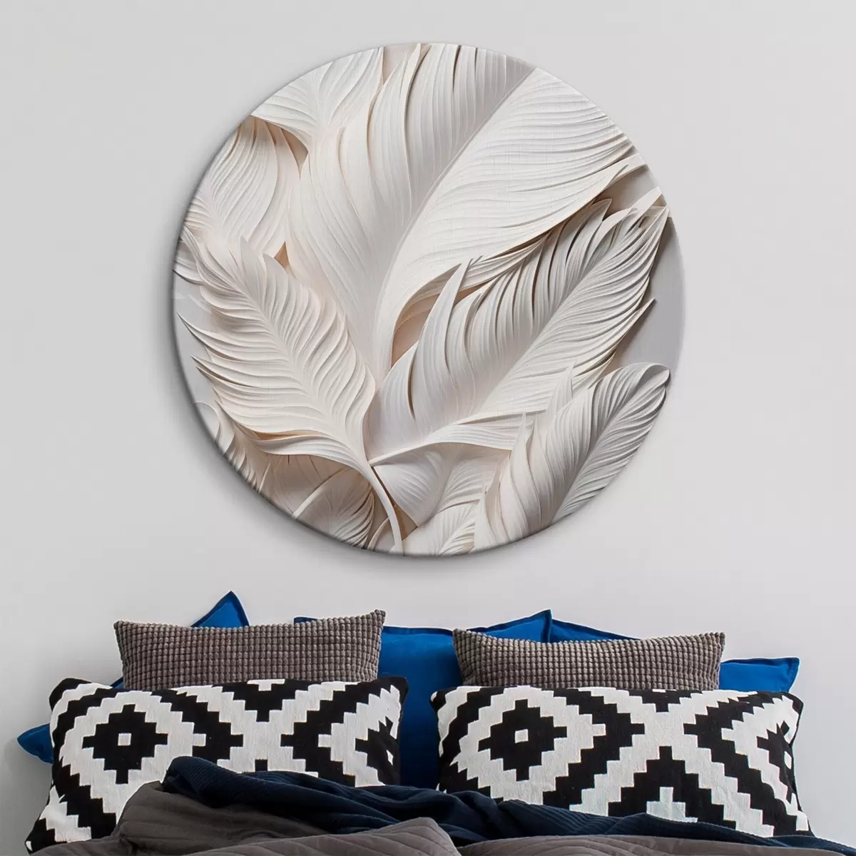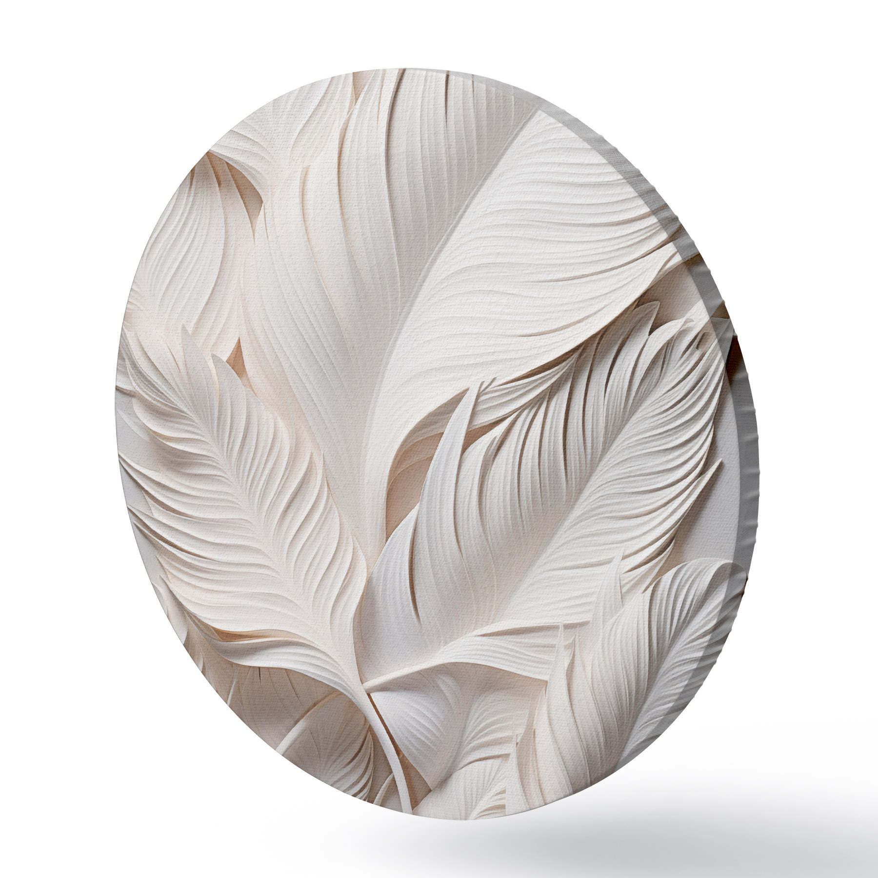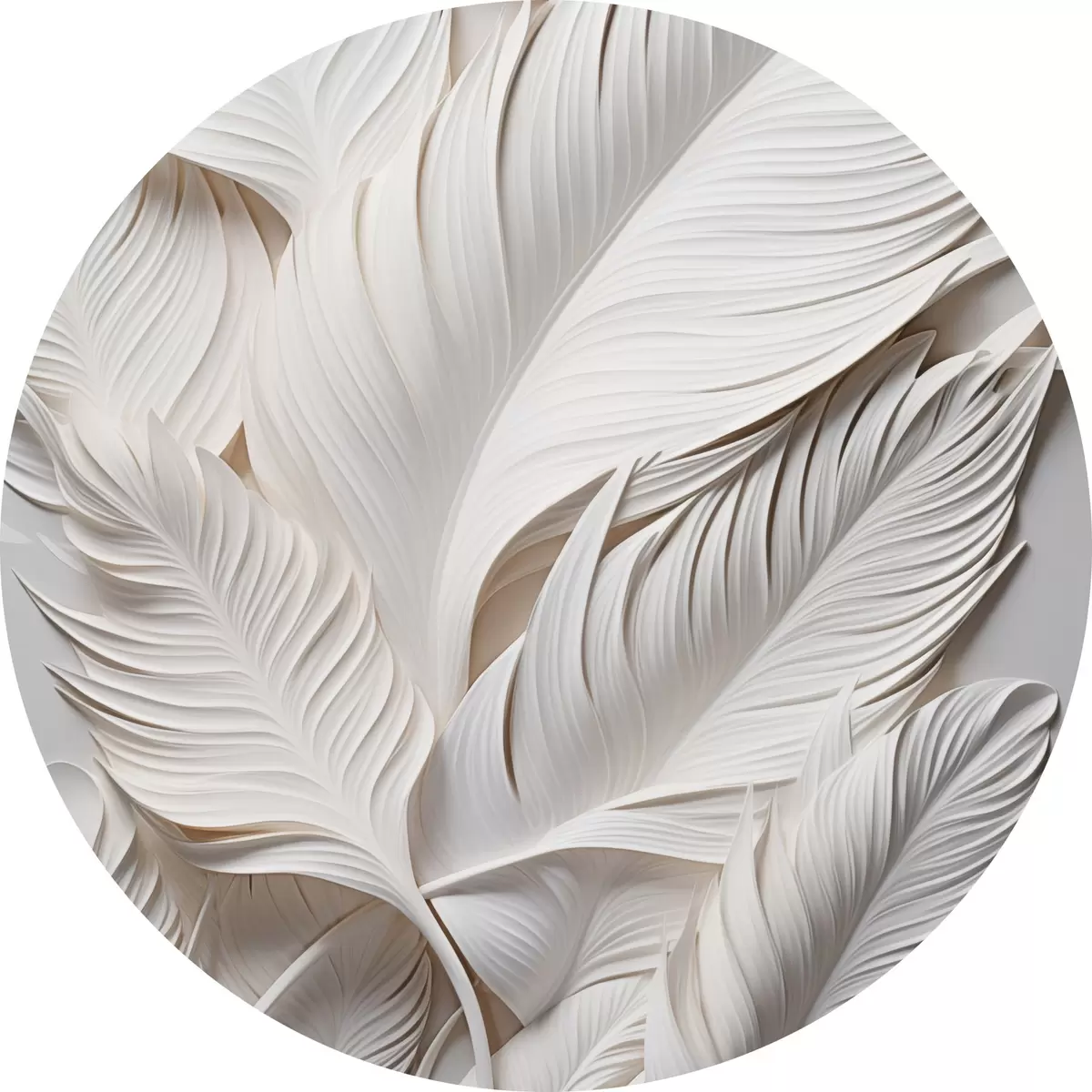 Apaļas gleznas Baltas lapas ar sarežģītiem detaļiem, radot teksturētu un slāņotu efektu, minimālisma māksla r46706