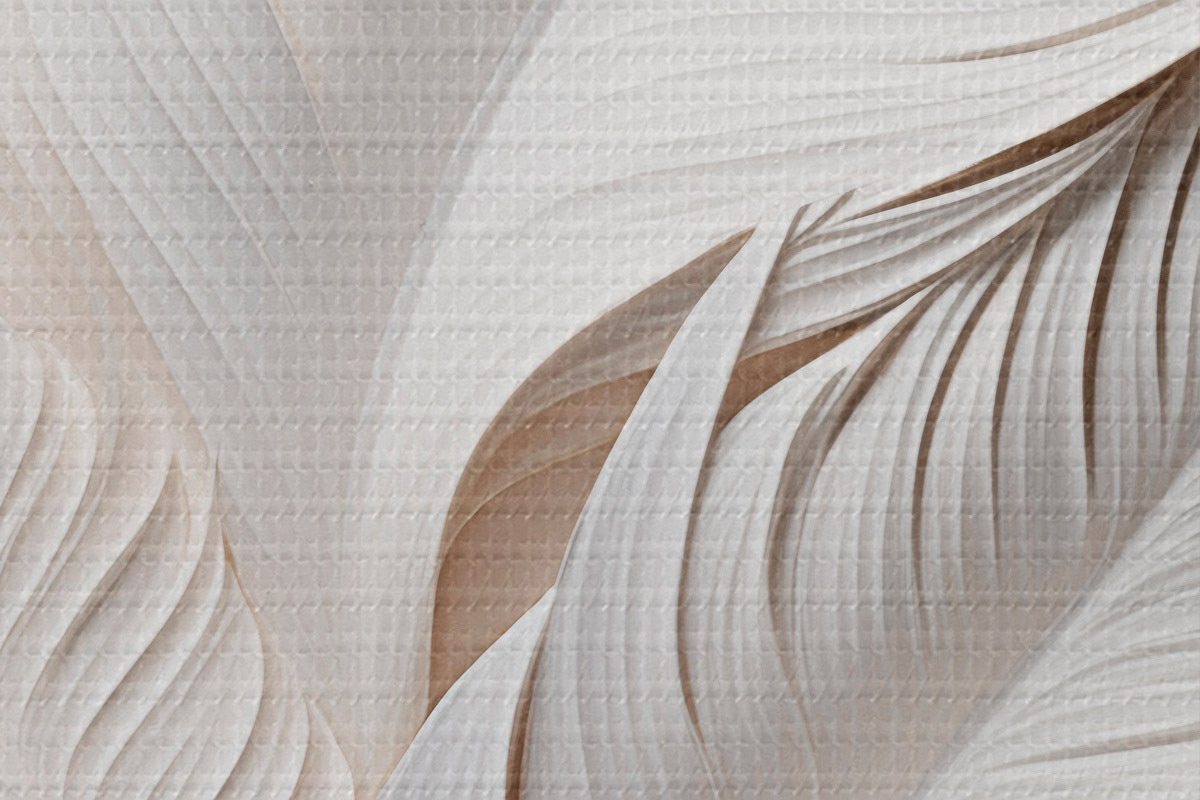 Attēls Baltas lapas ar sarežģītiem detaļiem, radot teksturētu un slāņotu efektu, minimālisma māksla Nr r46706