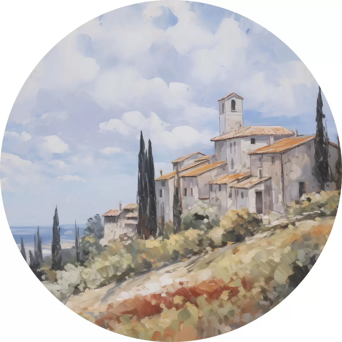 Apaļas gleznas Lauku ainavas imitācija glezniecībā r46716