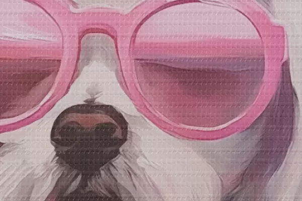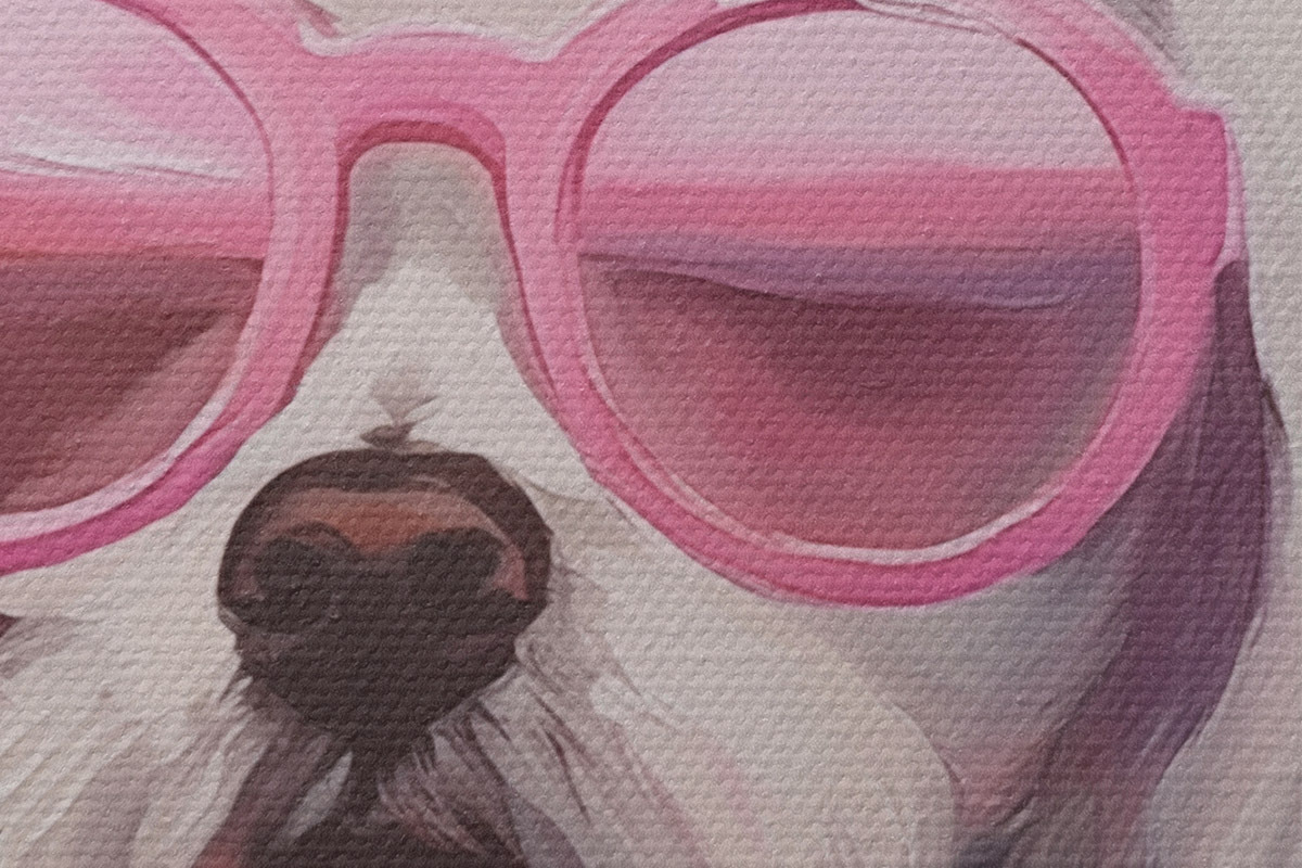 Attēls Mazs suns ar brillēm ir gleznas imitācija. Nr r46722