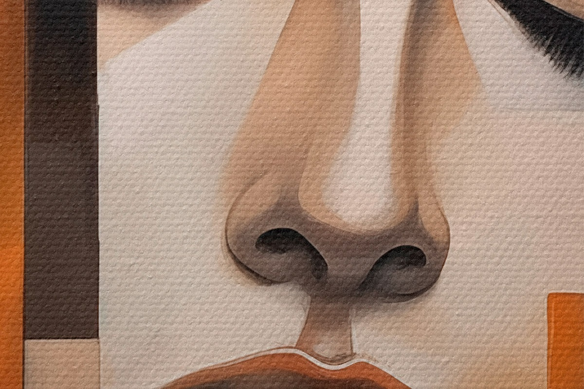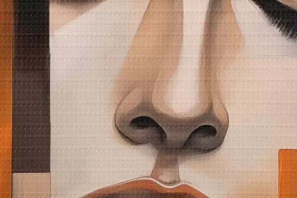 Smalkais diegu pinums uz šī audekla atgādina profesionālu mākslinieku audeklu virsmu.