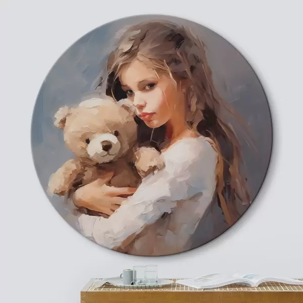 Apaļas gleznas Meitene ar rotaļlietu lāci, imitācijas glezna r46746