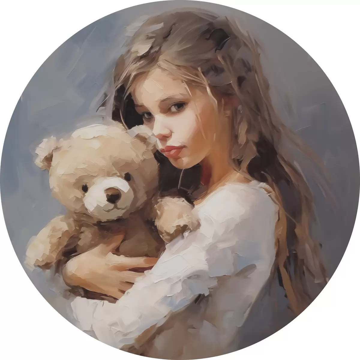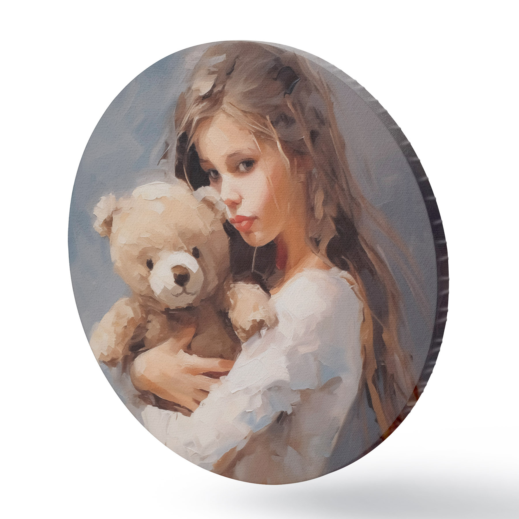 Apaļas gleznas Meitene ar rotaļlietu lāci, imitācijas glezna r46746