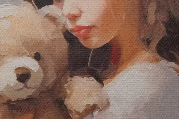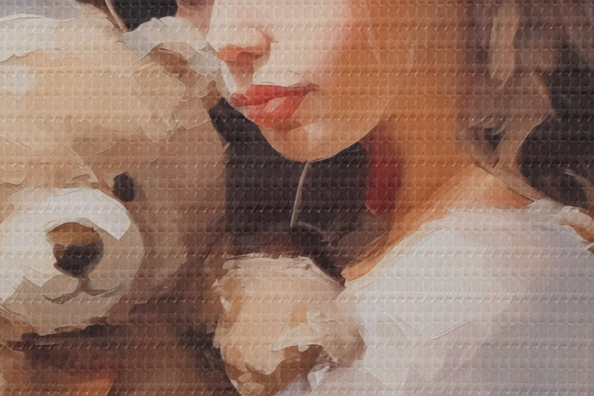 Attēls Meitene ar rotaļlietu lāci, imitācijas glezna Nr r46746