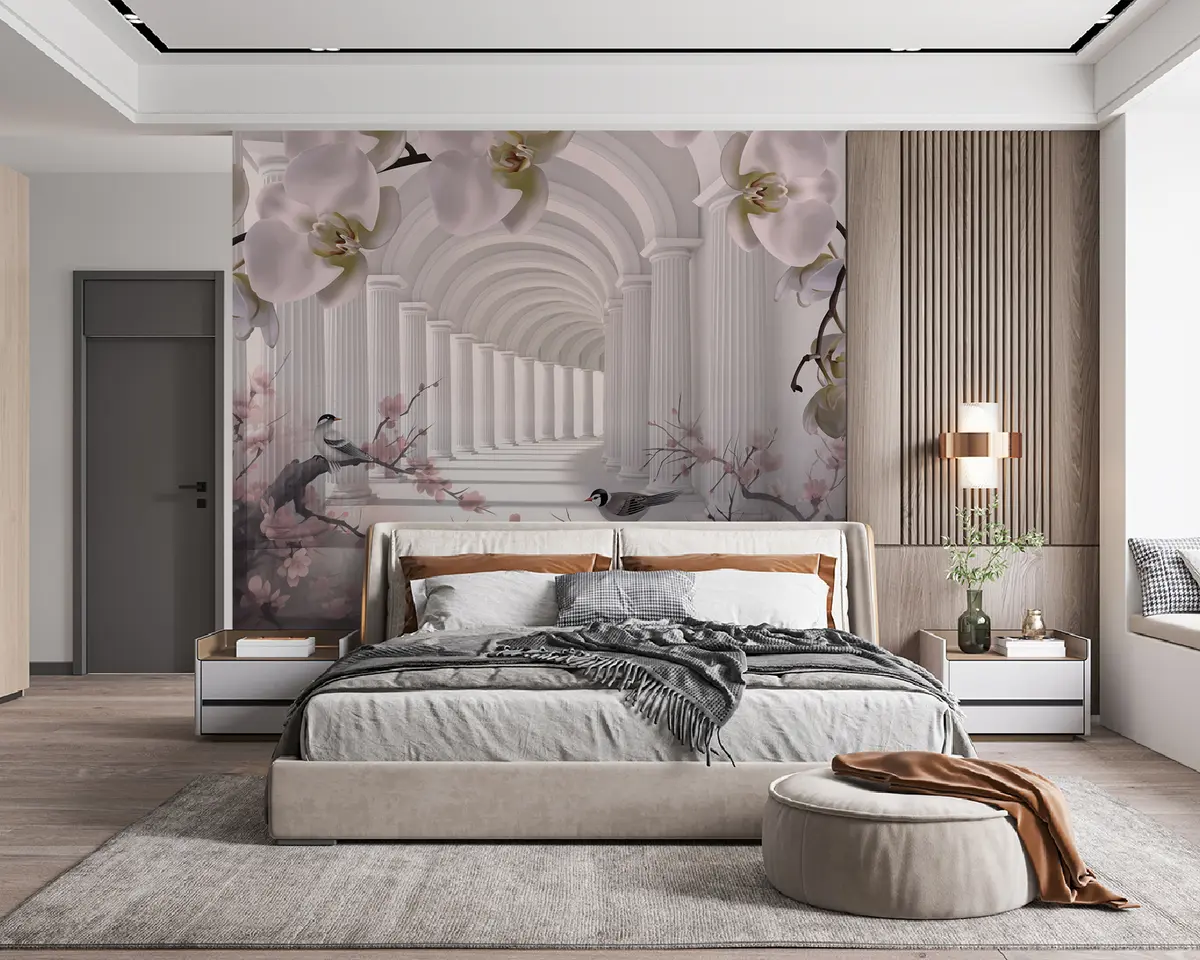 Fototapetes Skaists tunelis ar putniem un orhidejām Nr. u94513