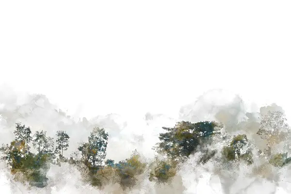 Fototapetes Akvareļu ainava ar akvareļu krāsu koku Nr. u75377