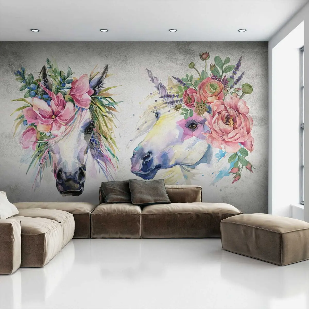 Fototapetes Zirgi ar ziediem Nr. u14264