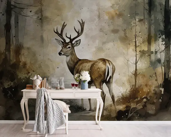 Fototapetes Ar roku zīmēts briedis mežā Nr. u95410