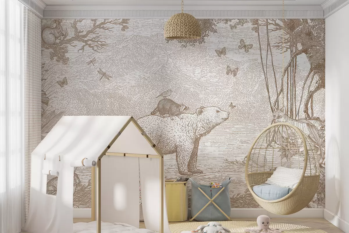 Fototapetes Pasaku mežs ar burvīgiem dzīvniekiem Nr. u95425