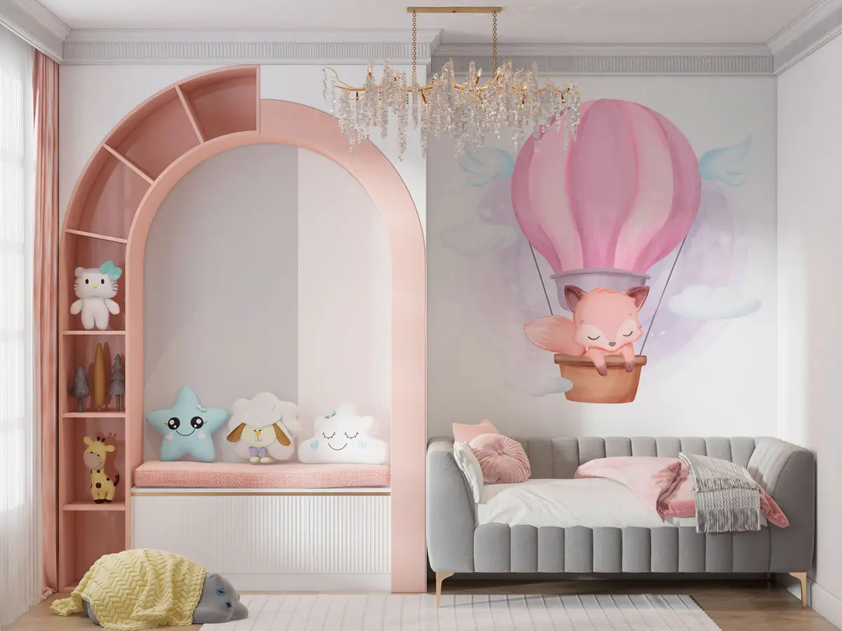Fototapetes Ilustrācija ar lapsu uz gaisa balona Nr. u97395