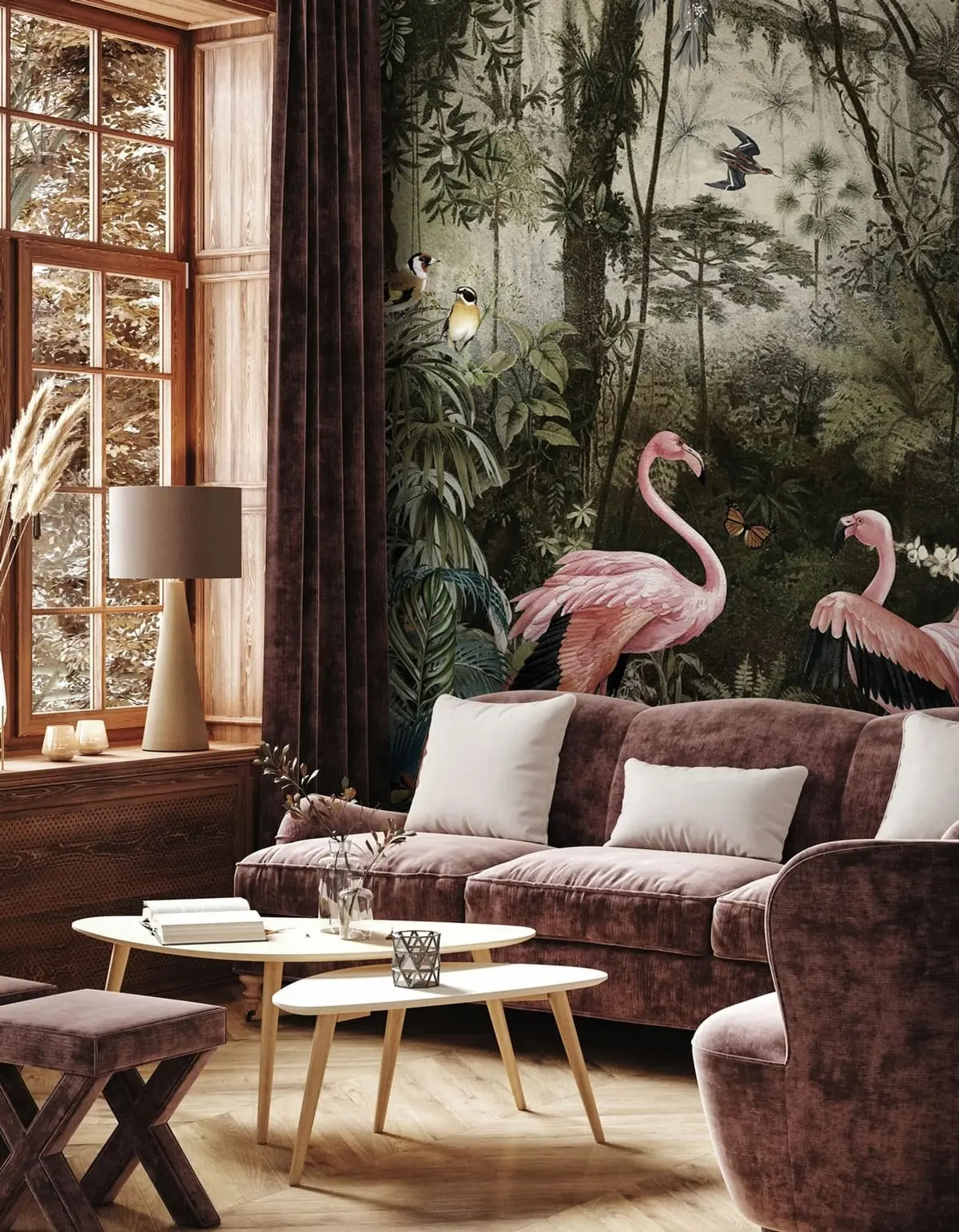 Fototapetes Tropu putni un flamingi džungļos Nr. u73568