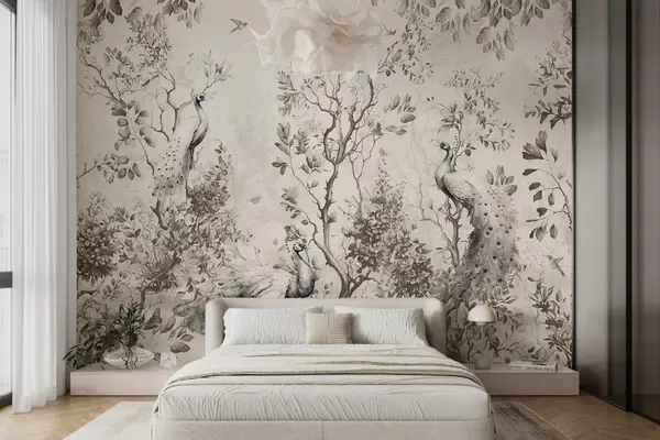 Fototapetes Dārzs ar trausliem putniem, pāviem Nr. u94850