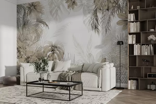 Fototapetes Tropu koki un lapas mežā uz balta fona u96472