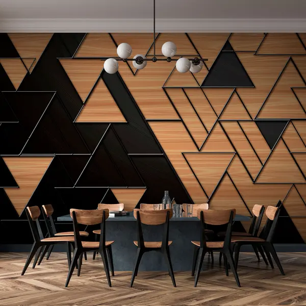 Fototapetes 3D tumši pelēki un koka graudaini trīsstūri ar reljefām līnijām Nr. u75167