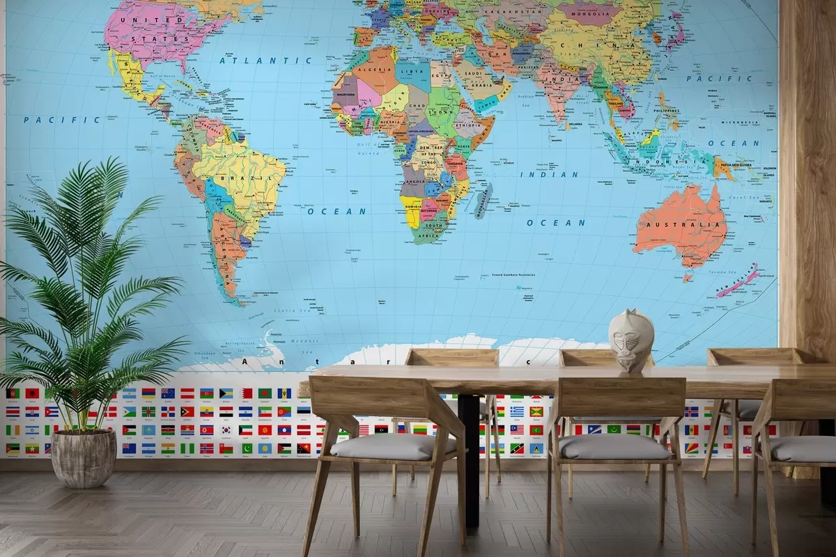 Fototapetes Pasaules karte ar valstu karogiem Nr. u60137