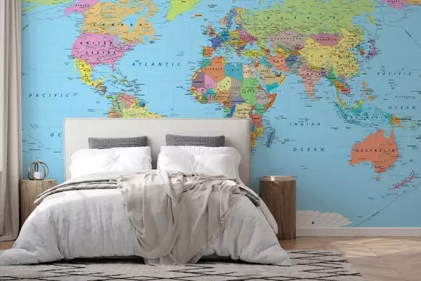Fototapetes Pasaules karte ar valstu karogiem Nr. u60137