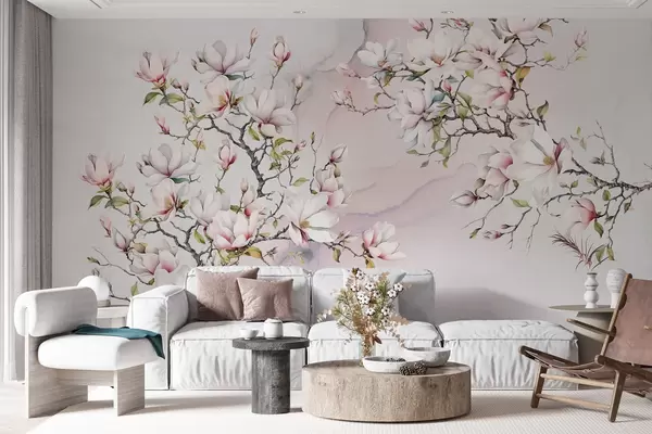 Fototapetes Ziedošas magnolijas koki uz marmora fona Nr. u96114