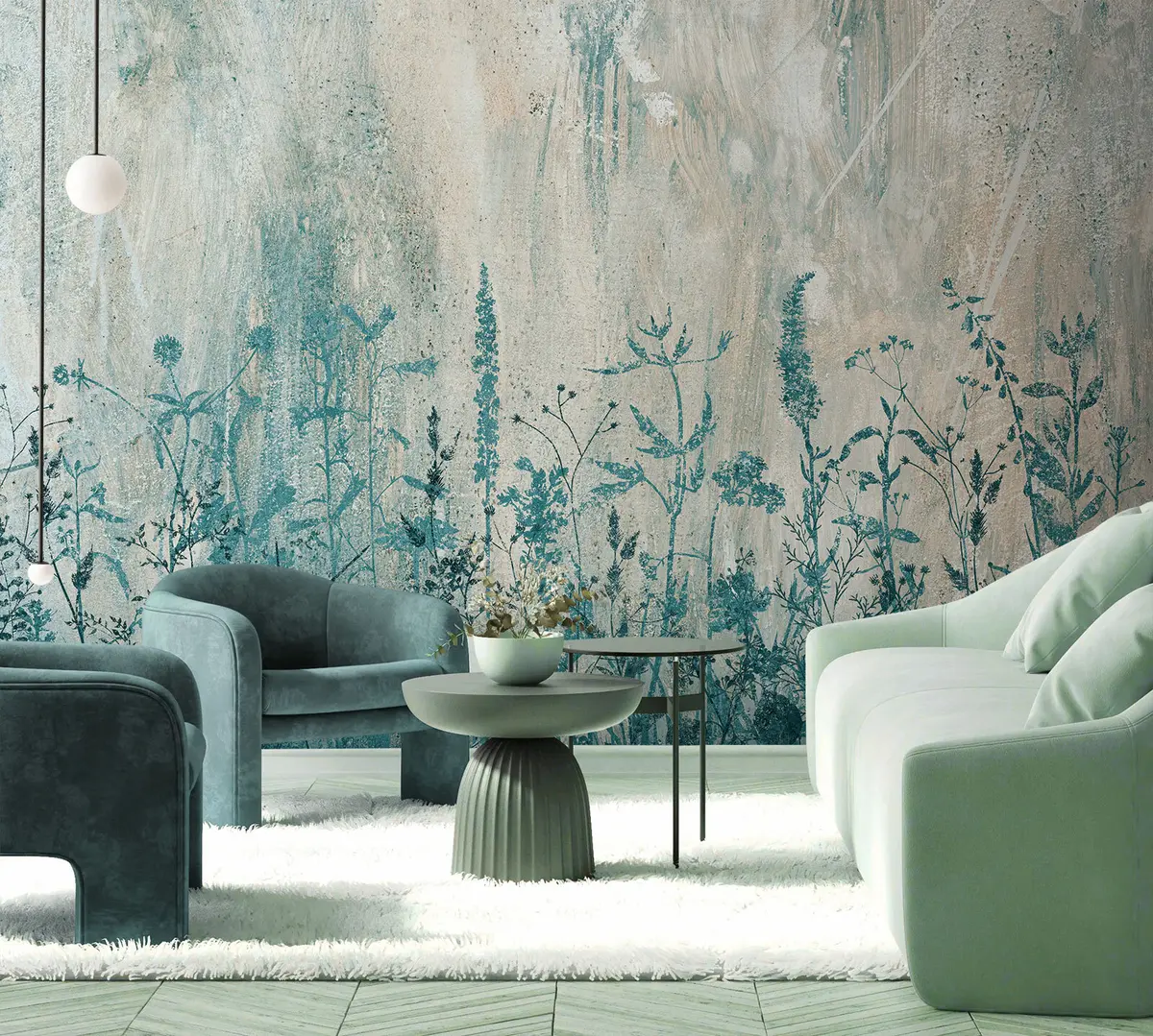 Fototapetes Zaļie augi uz betona sienas Nr. u93666