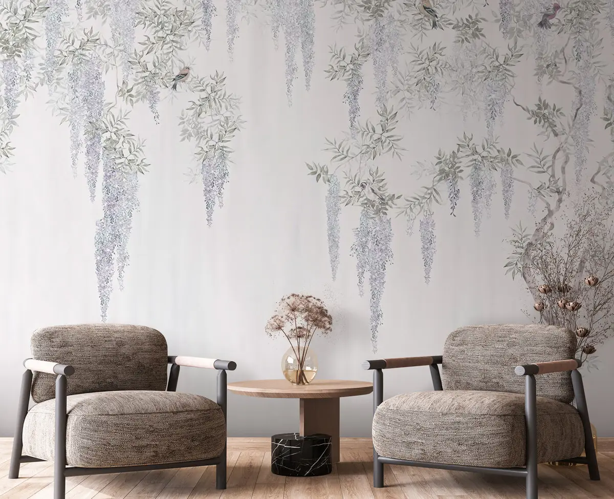 Fototapetes Vistērijas ziedi, vistērijas, minimālisms, vienkrāsains, bēniņi un japāņu stils Nr. u96928