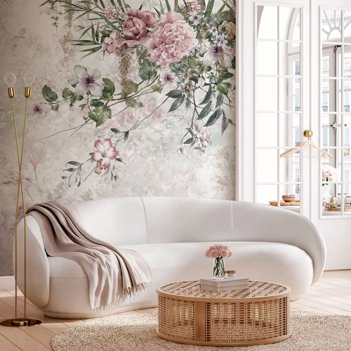 Fototapetes Vintage ziedi uz marmora sienas Nr. u97046