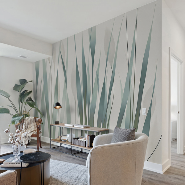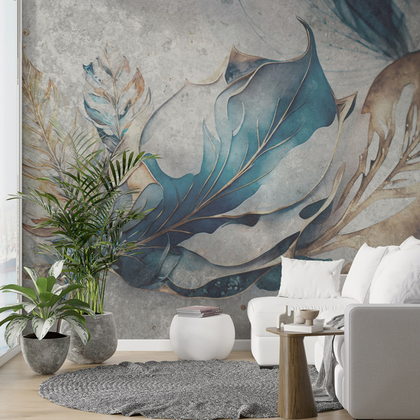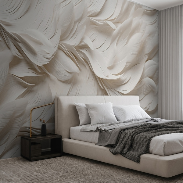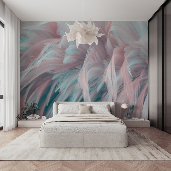 tekstūras tapetes maigās, pieklusinātās krāsās ar maigiem vistērijas ziediem un zariem.