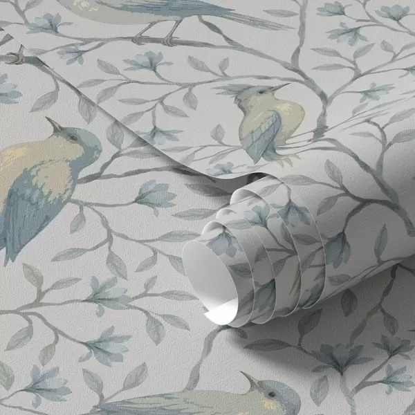 Tapetes Putni uz zariem, pelēkzils toņos Nr. a00782