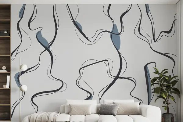 Fototapetes Tintes zīmējums, abstrakts raksts, ģeometriskas līnijas, pelēks un zils Nr. u99659