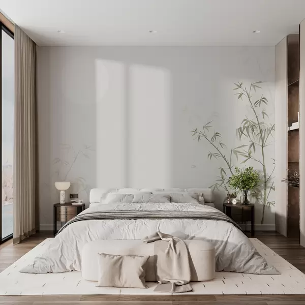 Fototapetes Minimālisma stilā Japandi augu bambusa un saules Chinoiserie zaļā krāsā Nr. w00547